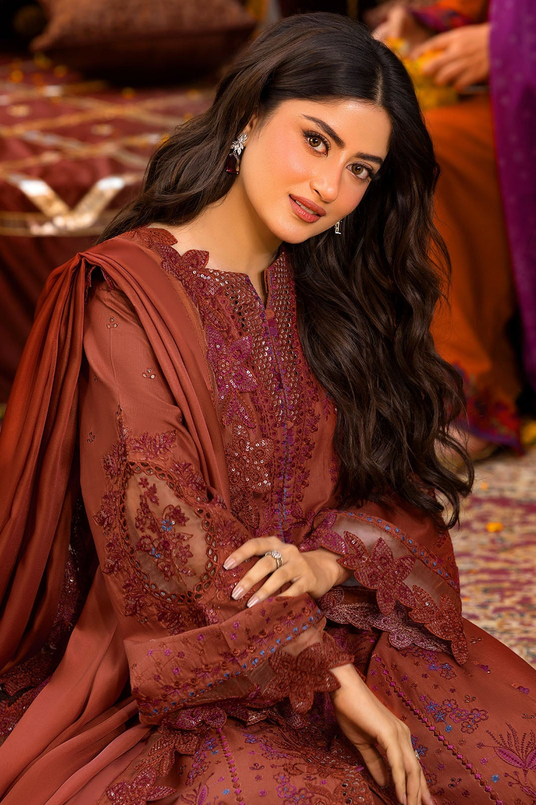 5931-CRIMSON EMBROIDERED LAWN STITCHED